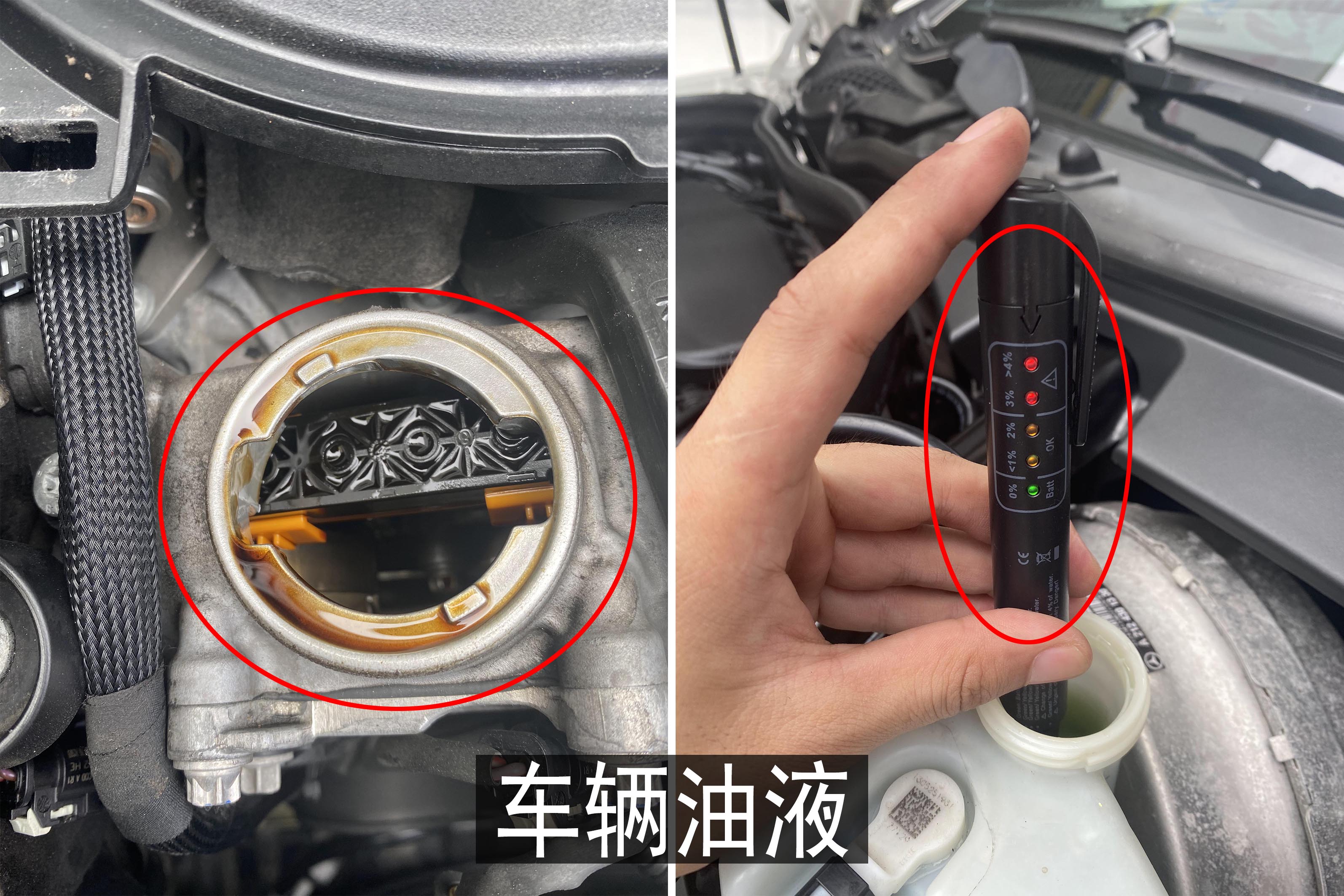 关于发动机本体我们能看到的问题就是这些,最后我们再来看下车辆的油液↓